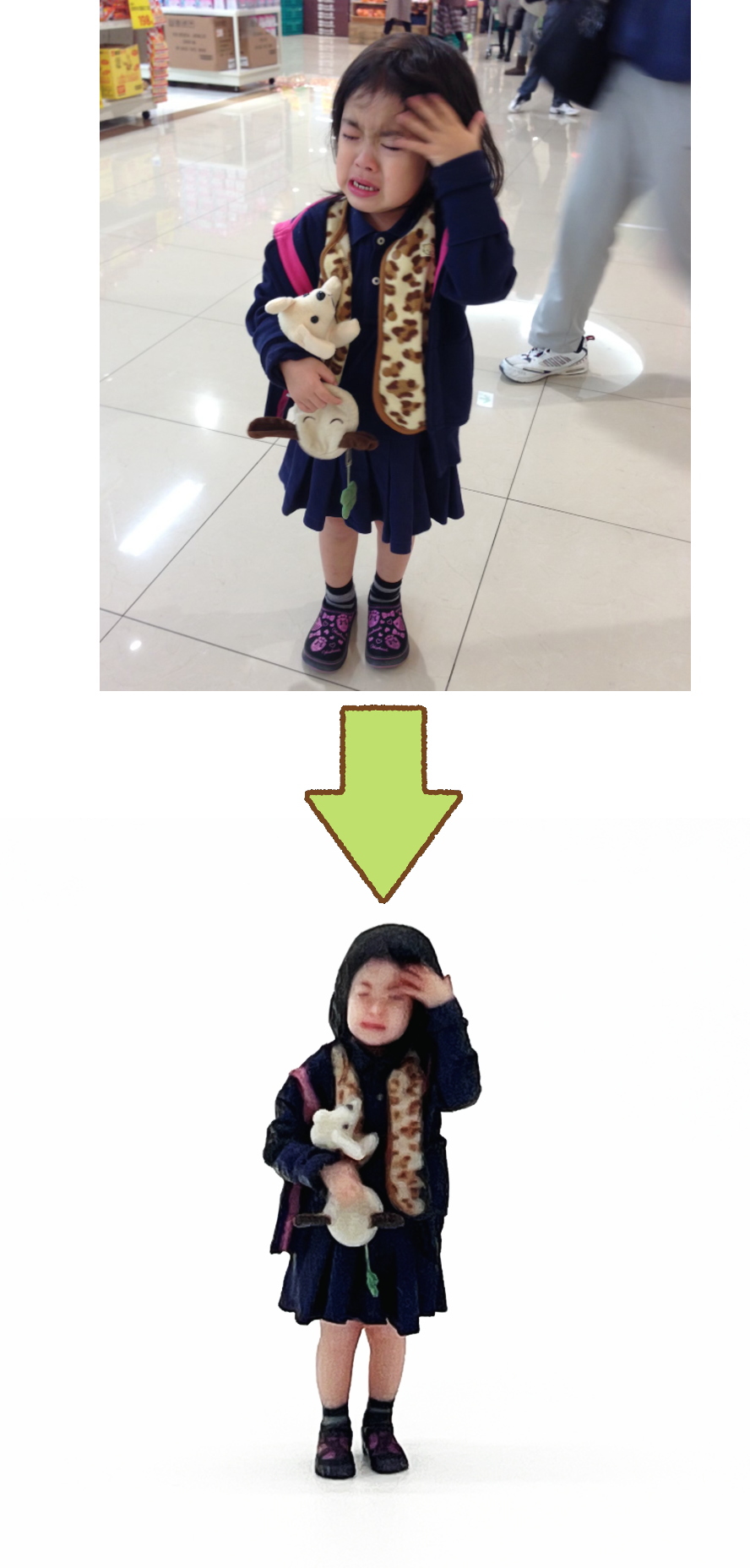 最新のAI技術を用いて、お写真1枚からフルカラー3Dフィギュアを制作いたします。